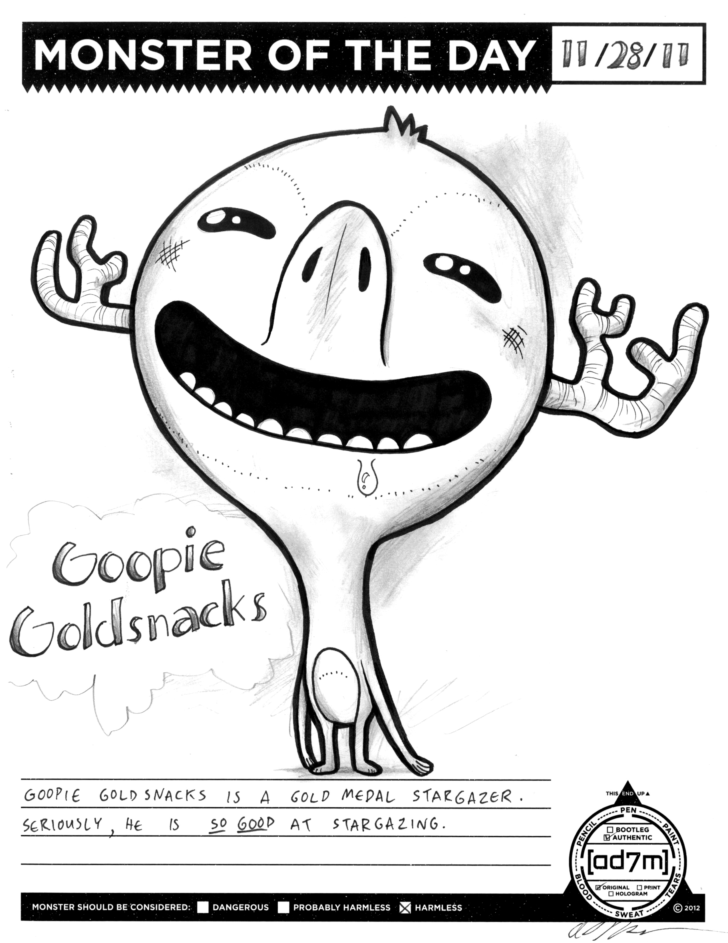 Original pencil and pen sketch. The Monster of the Day for November 28th, 2011.