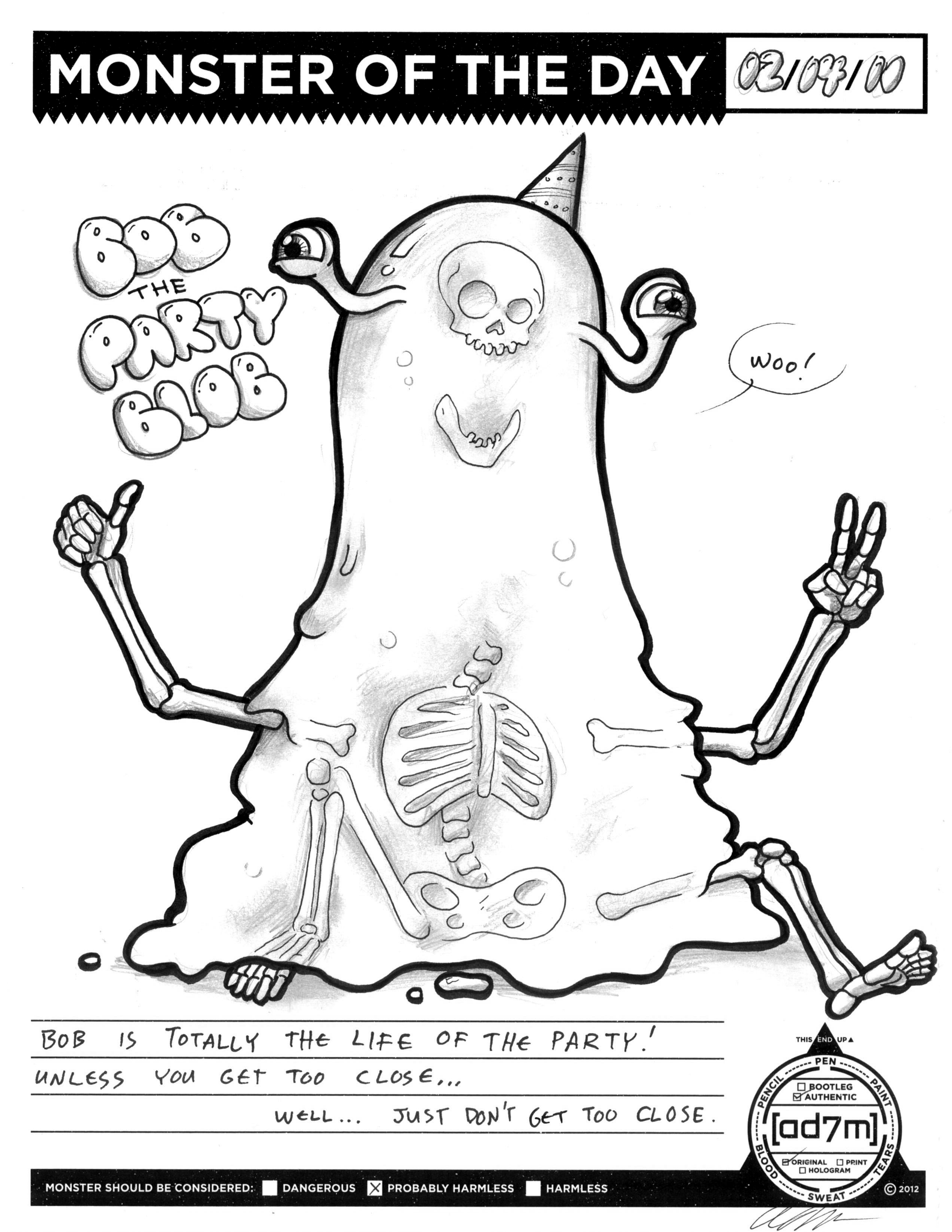 Original pencil and pen sketch. The Monster of the Day for December 14th, 2011.