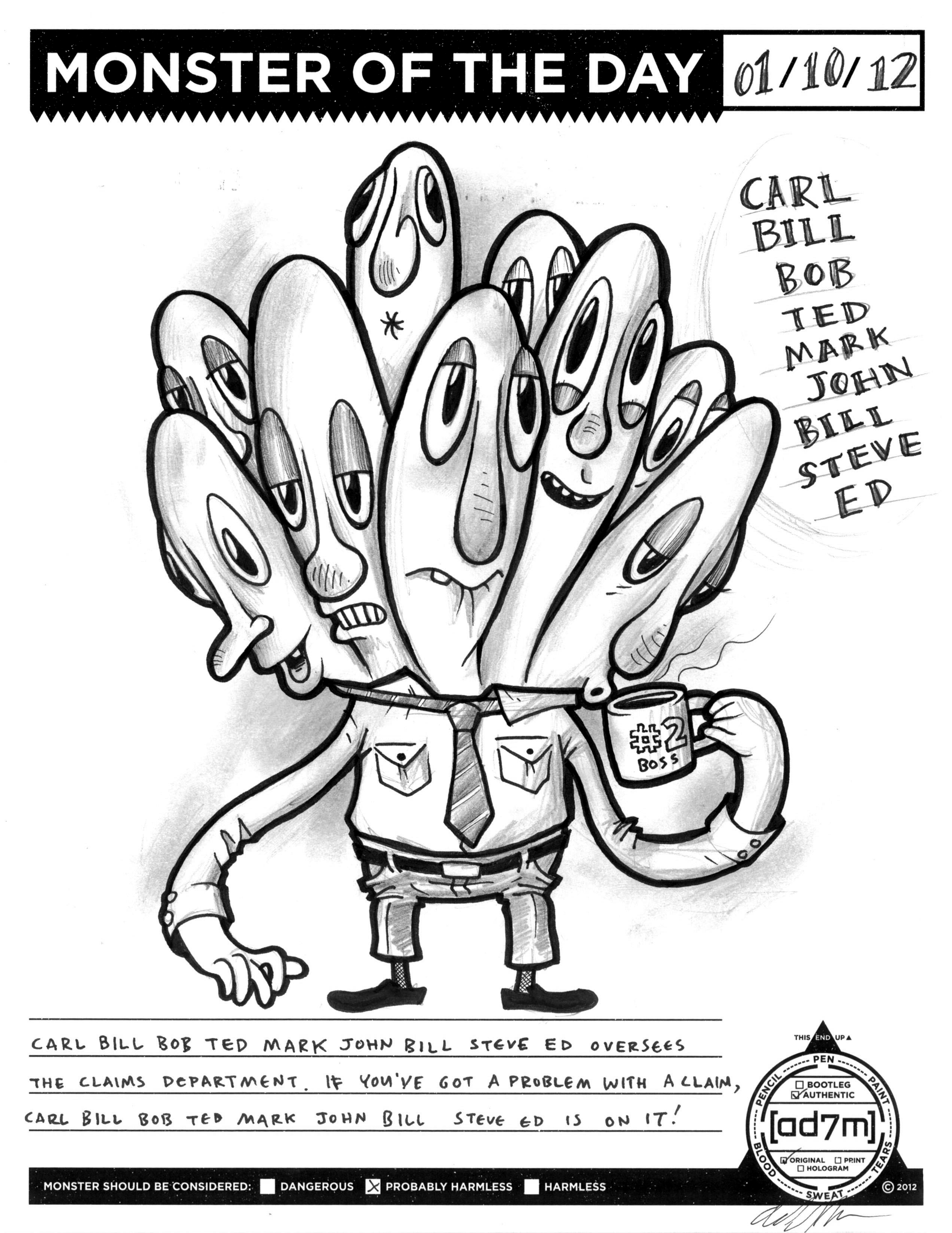 Original pencil and pen sketch. The Monster of the Day for January 10th, 2012.
