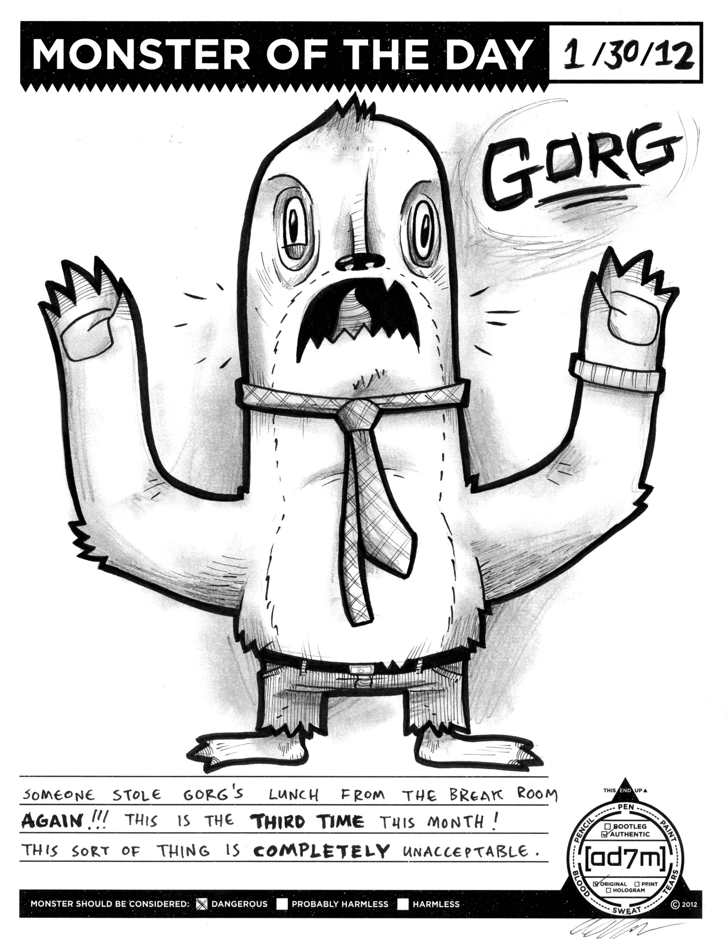 Original pencil and pen sketch. The Monster of the Day for January 30th, 2012.
