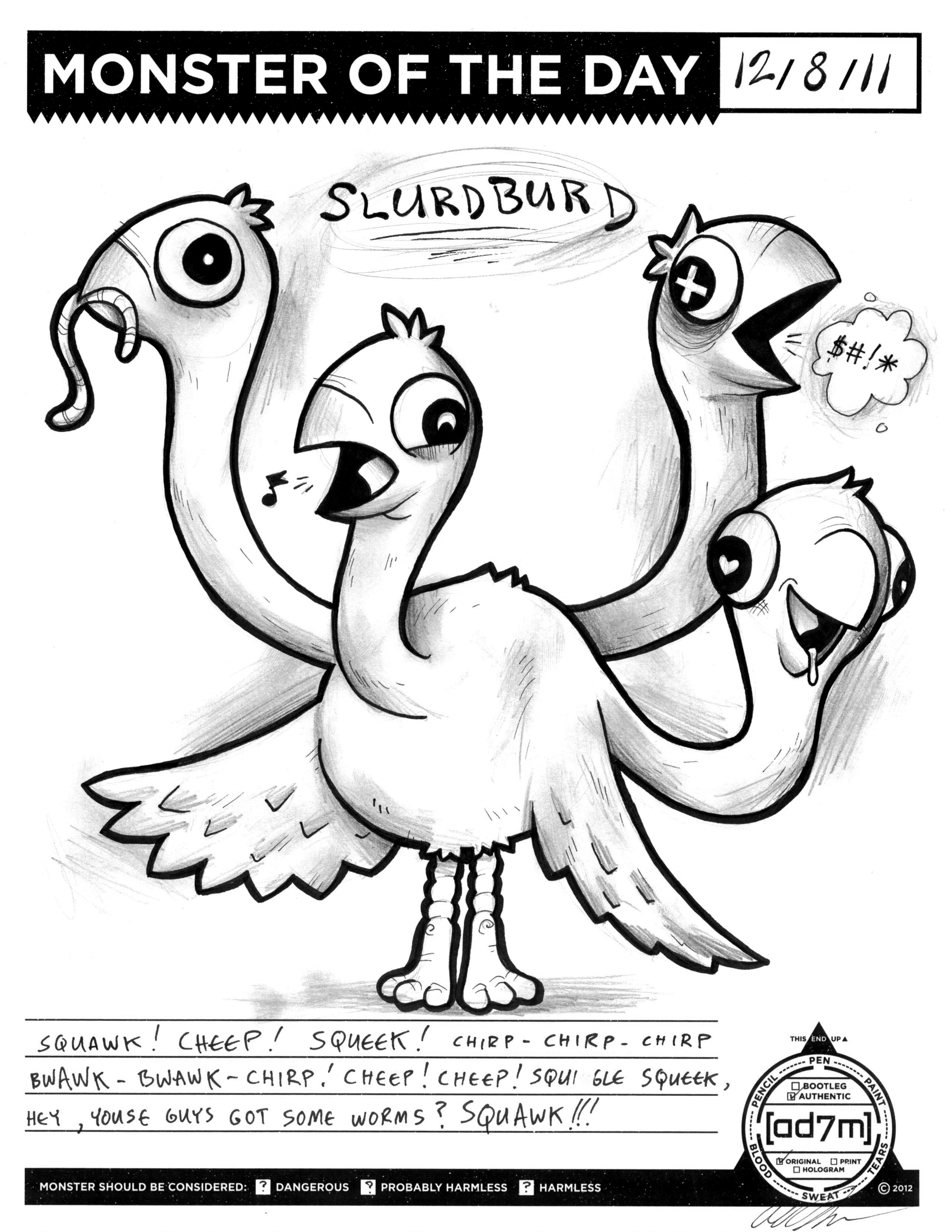 Original pencil and pen sketch. The Monster of the Day for December 8th, 2011.